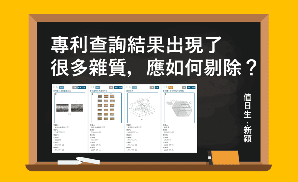 專利查詢結果出現了很多雜質,應如何剔除? 發佈留言 / 【智財老司機帶我飛】、IN,才施教 / 作者: 新穎公司Innovue 專利檢索的筆數太少不行,那太多有差嗎?在如何快速擴充關鍵字這篇裡教了如何檢全,那「檢得超級全」不繼續調整「檢準」,這樣可以嗎? 不囉嗦,讓我們繼續看下去~