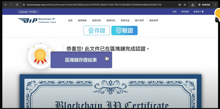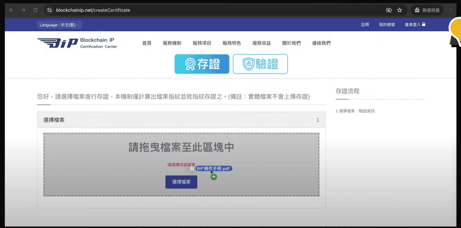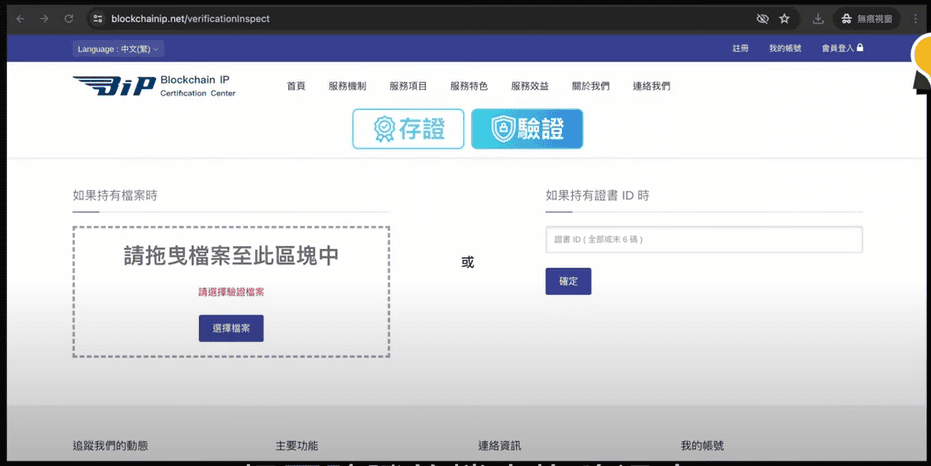 進入BIP(BlockChain IP)網站,目前現正開放免費試用中,不需要加入會員,就可以隨時進行數位資料的存證及驗證。