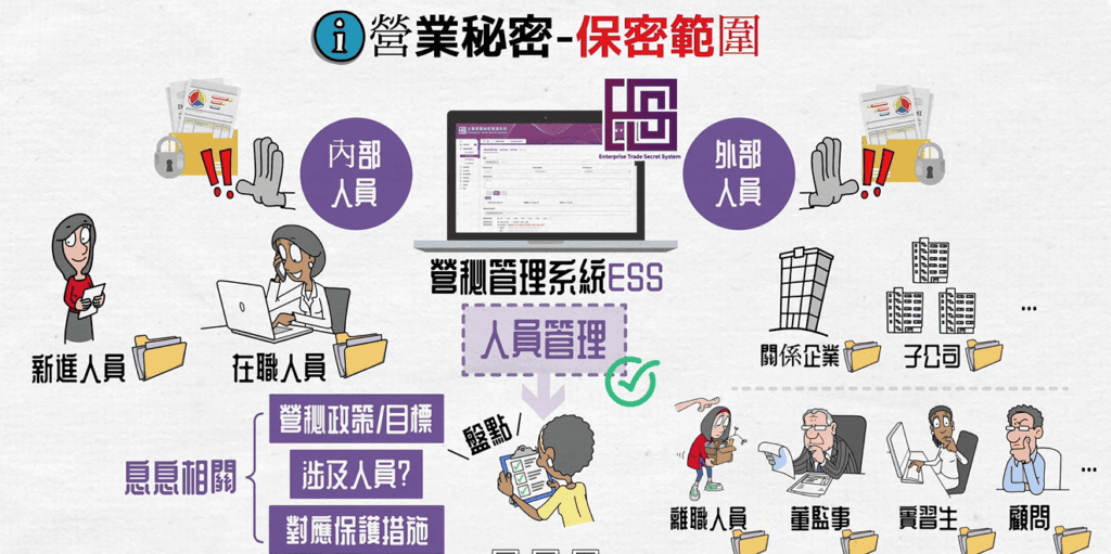 營業秘密管理最重要的一環就是人員管理。營業秘密外洩一定就是透過「人」所流出去的。所以針對接觸營業秘密的任何人,都應該要納入人員的管理範疇,建立完整的護城河。
