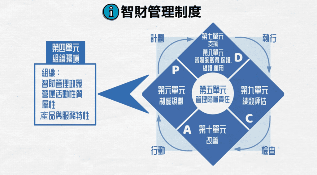 政府在智財管理制度政府推動非常的積極,除了有公司治理的相關政策規範以外,也有相關的法令不斷的在修正實施哦!像是營業秘密涉及國安法的規範內容,現在都已經實施了,這部分更加重企業對於智財管理的重要性。