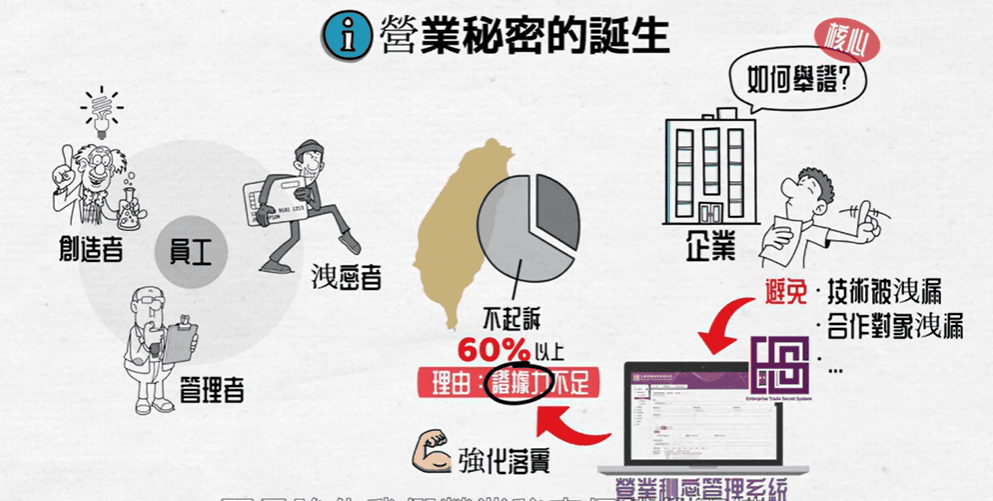 營業密秘需要提案註冊,並且有效保護它。沒有專門、專業的資訊系統進行管理,應該很難讓老闆隨時掌握正確的資訊的。連台積電內部也都需要專門的營業秘密註冊系統,所以這幾年台積電也在他們的社會永續報告書公布他們的營業祕密案件量。
