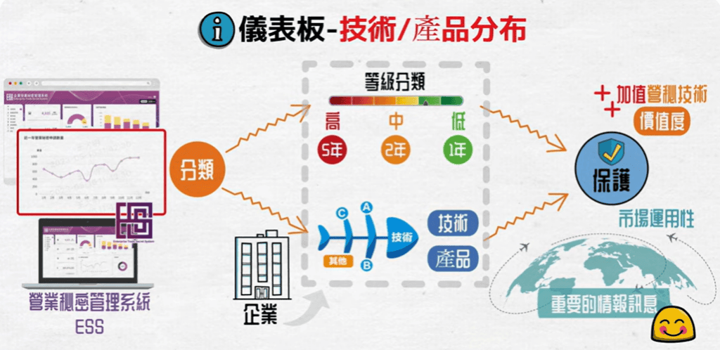 另外,ESS有提供非常多的營業秘密的儀錶板,是可以作為企業主在進行市場或是創新技術投資時的決策依據。這些都是在征戰市場重要的技術創新情報,一定要隨時掌握。
