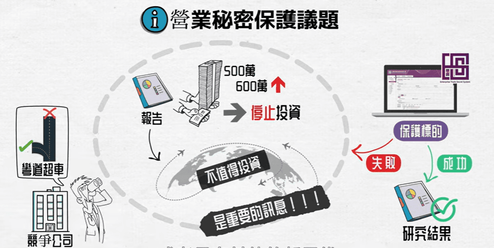 所以營業秘密保護的標的,不見得是成功的分析或是研究,失敗的數據也是我們保護的標的哦!因為競爭公司看了我們失敗的數據分析,就可以彎道超車,或是有其他的新思維,這都是市場的競爭情報,不能我不用,你就可以帶走,這要特別注意。