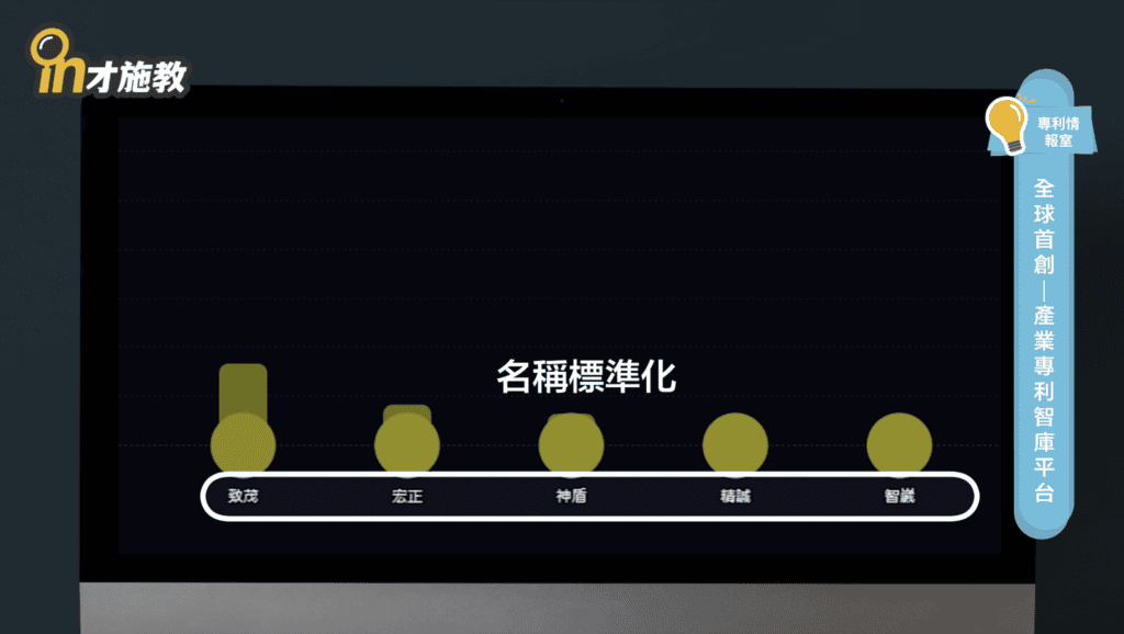 產業專利智庫平台的另一大特色就是所有專利申請人名稱都有進行標準化,在使專利報告更具準確性的同時,也讓使用者更容易查詢相關的專利申請人。現行許多國外廠商都尚未在這塊領域進行投入,也為有如同新穎公司這種在地廠商,才會對台灣專利申請人進行統一化。