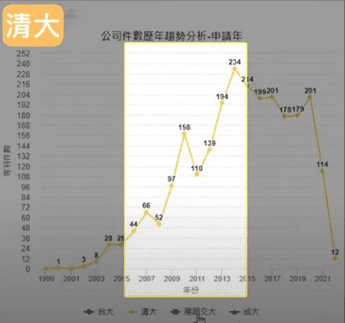 清大的專利申請高峰,大概是從2006年到2015年這個區間。