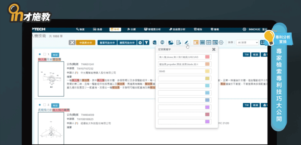 所以,使用對的工具,透過滾動式的專利檢索策略,來建立專利技術專案,累積關鍵字詞,專利檢索的品質絕對比市面上幫您標引分類的檢索,更精確也更符合技術分析標的。