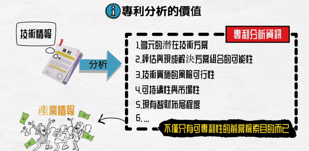 專利說明書內含完整的技術情報,藉由分析專利的過程,就可以了解: