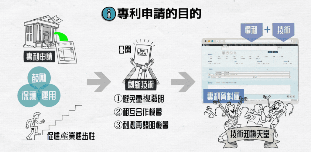 也就是希望透過專利權利的保護,促進大家願意公開自己的創新技術,避免大家重複發明,讓這個有限資源的環境,透過訊息的充分揭露,有相互合作或是刺激再發明的機會。
