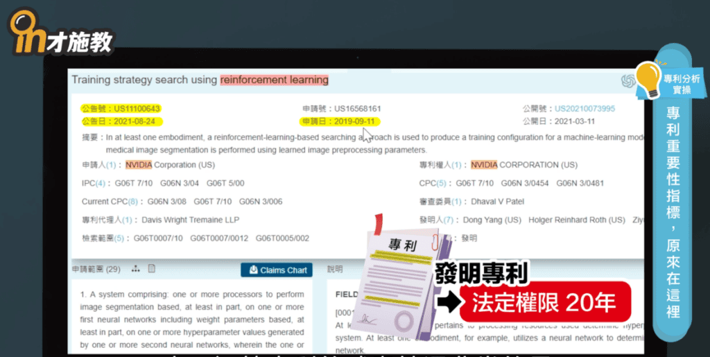 你是不是常常看了一篇落落長的專利,不知如何看起?或是到底如何判斷這篇專利的重要性?今天我們透過nVIDIA的例子,來告訴您專利的重要性指標,以及該如何閱讀專利。另外為甚麼專利會1案有2件呢?又或是1案多件又是什麼呢?我們繼續往下看吧!