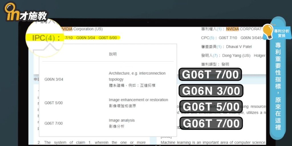 另外,這裡也可以看出來,在IPC4揭分類有4個,等於是它的技術跨域性高,不過通常我們在分析會更嚴格一點,會用3階來看技術的跨域能力,不過4階也是有許多專家會利用,不過4個4階IPC分類是真的很厲害的跨域技術了。