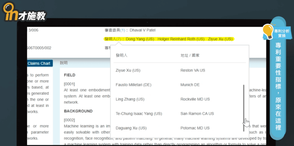 還有,這篇專利有7位發明人投入,大家可以去看看貴公司的專利,通常發明人數有幾位,再用自家的專利品質或是重視程度來評估一下,是不是發明人數越多,表示公司對這個研發技術投入越多,越重視這個技術。