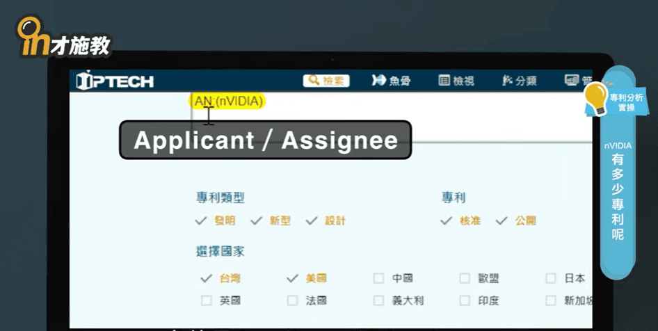 nVIDIA有多少專利呢?你是不是想直接把nVIDIA直接下進檢索條件裡?