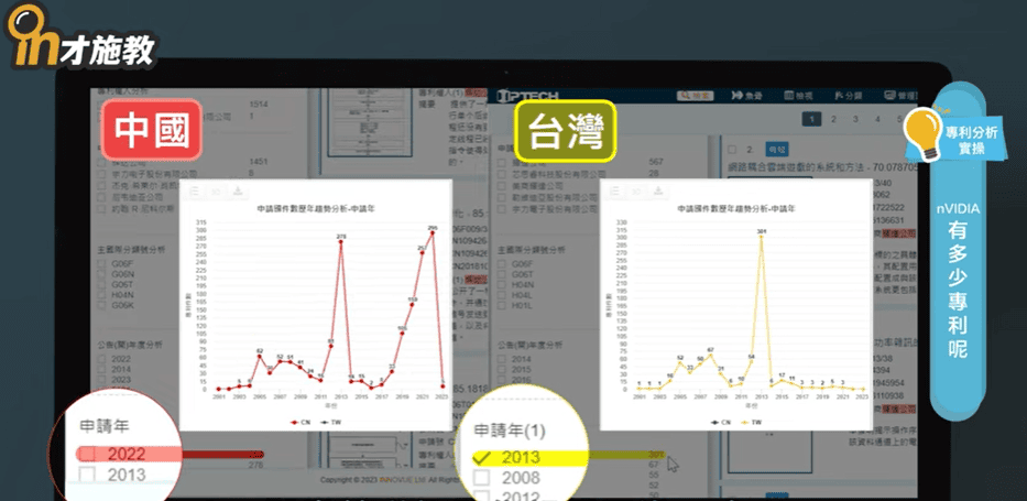 不過在這裡IPTECH也幫我們就nVIDIA在美國、台灣專利量顯示出來了,美國大概有6170案、台灣大概655案。