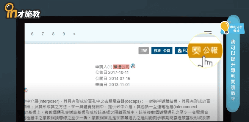 雖從這裡的顯示看到,就有「公開」「核准」的資料,可以自行點選要看的內容。如果直接點選名稱的話,顯示原則有「核准」-以核准為主;「無核准」-顯示公開資料。同時,也有PDF的下載,台灣專利也有「公報PDF」提供下載。不過還是建議將檢索完畢的資料儲存成專案,再進行後續的專利閱讀。