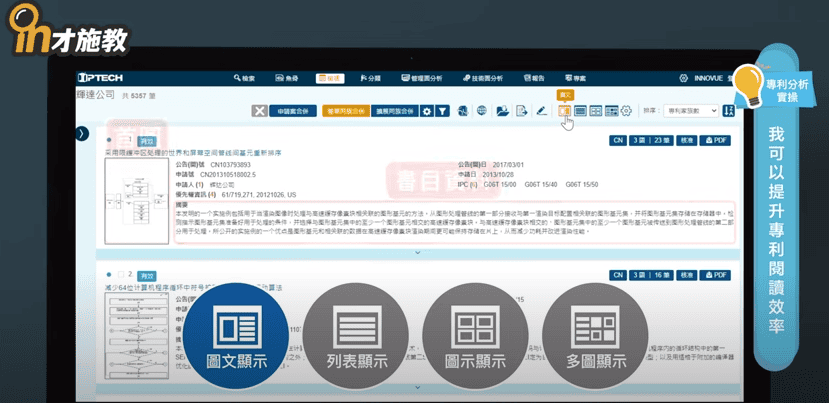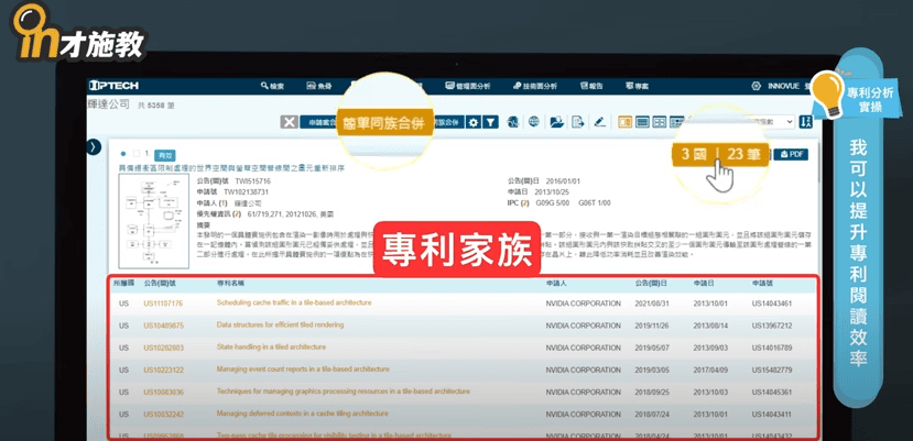 今天我們的技術人員分享這些專利家族的專利如何合併進行使用,才會省去閱讀的時間,提升工作效率;同時,也分享如何就需求情境調整代表專利,來進行閱讀。而各種專利閱讀模式,都有它應用的情境與技巧。