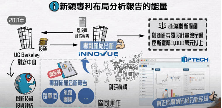 新穎近幾年在專利布局分析報告的投入資源是相當大,主要是2017年UC BERKELEY創新中心投資公司,也帶來許多美國市場的機會。因為美國創新中心持續都會針對全球進行創新技術的投資評估,所以必須提供可投資的評估報告。我們以專利布局分析為主,這也奠定了在專利布局分析的服務能量。
