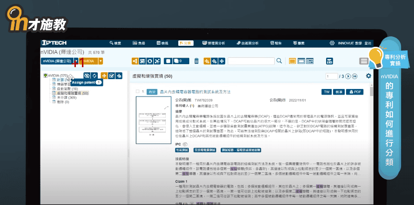 短短15分鐘,就大概將nVIDIA專利完成50%的技術分類了,非常快速。掌握專利非難事,就是要靠正確的工具輔助使用。