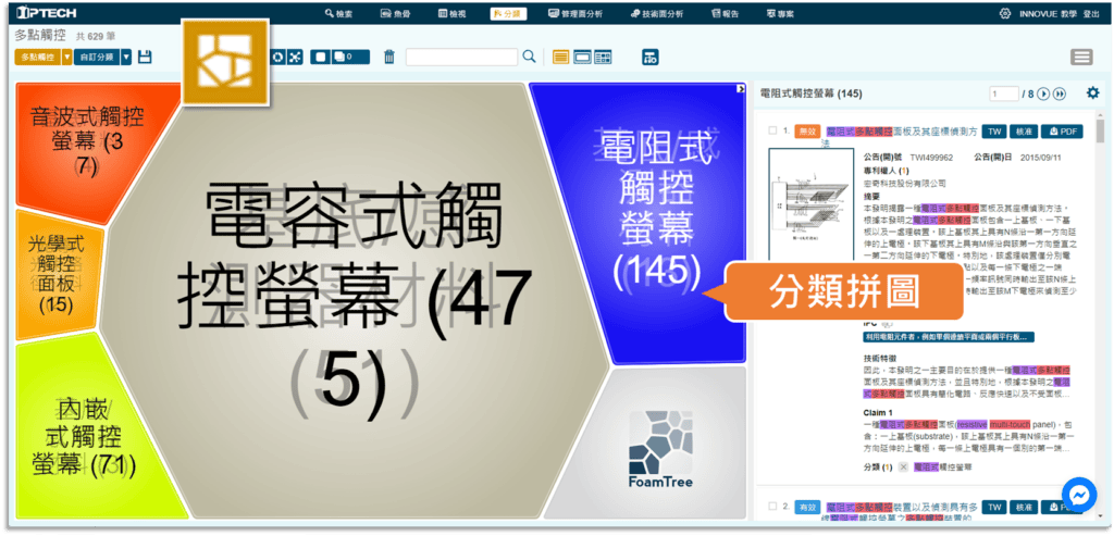 在家玩拼圖好難,IPTECH自己就會拼好!還可以快速看出哪些分類裡的專利比較多,最重要的是可以看出整個市場布局的概況,這才是分析的重點!