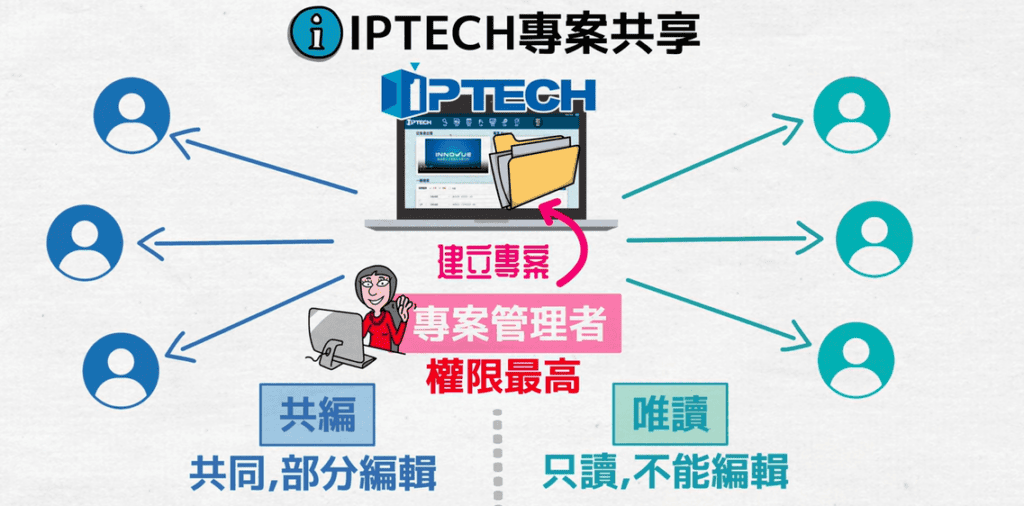 專案管理者就是專案的建立者~當你在IPTECH做完檢索並儲存、建立專案後,那你的身分就是專案管理者囉!後續就可以把這個專案分享給其他的夥伴