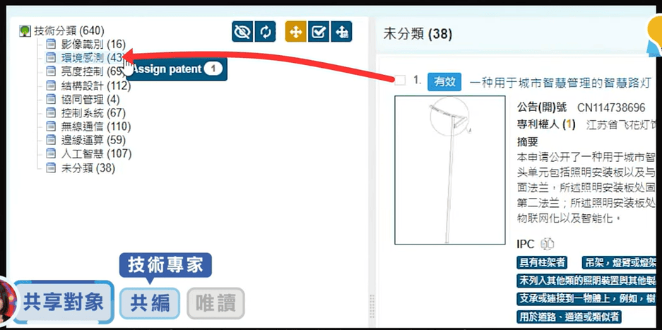 再來是最重要的是分類頁!唯讀者是無法自己建立「自訂分類」,也無法做分類節點的調整,只能進行分類查看呦!!如果管理者開唯讀權限給你,很大機會是管理者覺得你是專利布局分析看相關圖表的專家喔!