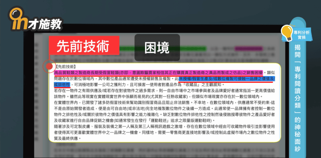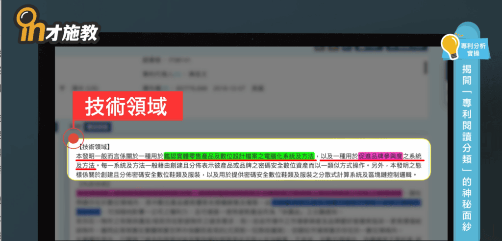 我們這集要跟您探討,專家如何利用專利內文,進行技術分類或篩選工作的。也就是哪一些資訊是您在進行專利閱讀工作可以深入運用的?
