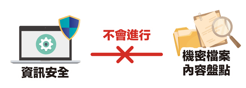 也就是,資訊安全不會進行「機密檔案」的內容盤點。但是TIPS是需要的,我們要確認「機密文件」是被管制的。