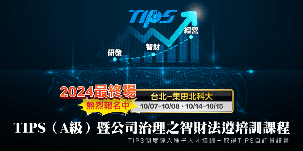2024年TIPS(A級)暨公司治理之智財法遵培訓課程開課組織認證