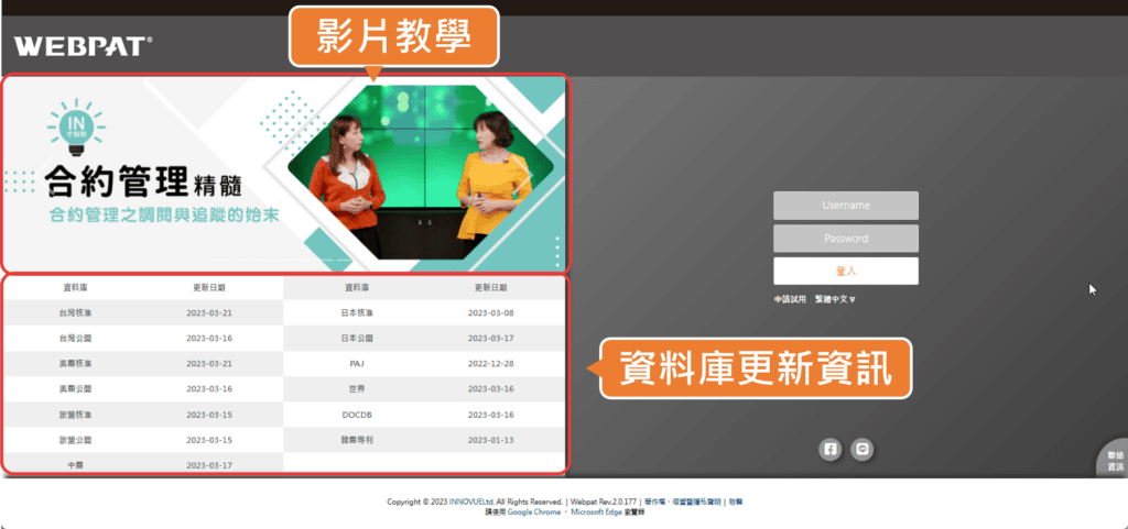 最新教學影片、維護通知、新功能資訊等,WEBPAT所有訊息我們都想讓您知道,建立與您最新的訊息管道,只為提升對您的服務品質。