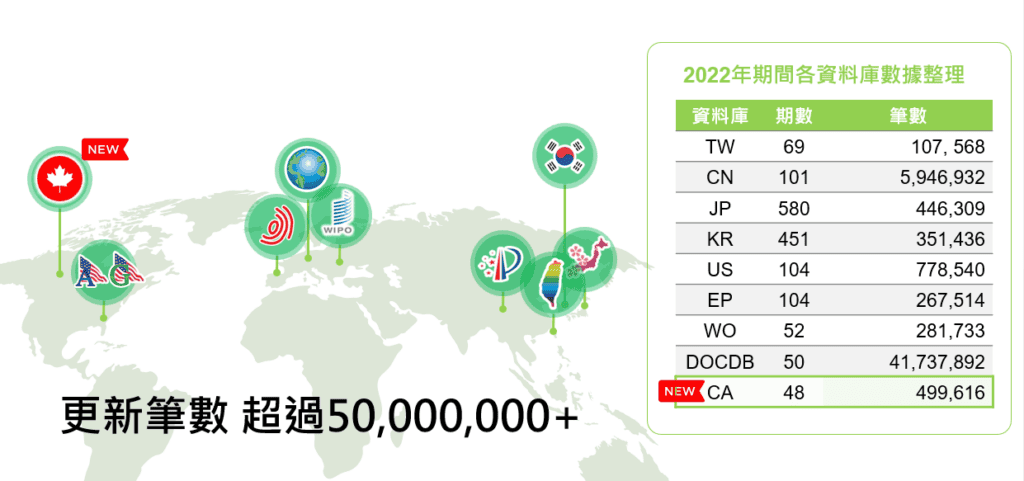 2022年WEBPAT更新超過150個國家專利資料庫,更新資料量超過50,000,000條,海量資料隨時更新,掌握全球專利訊息非難事。
