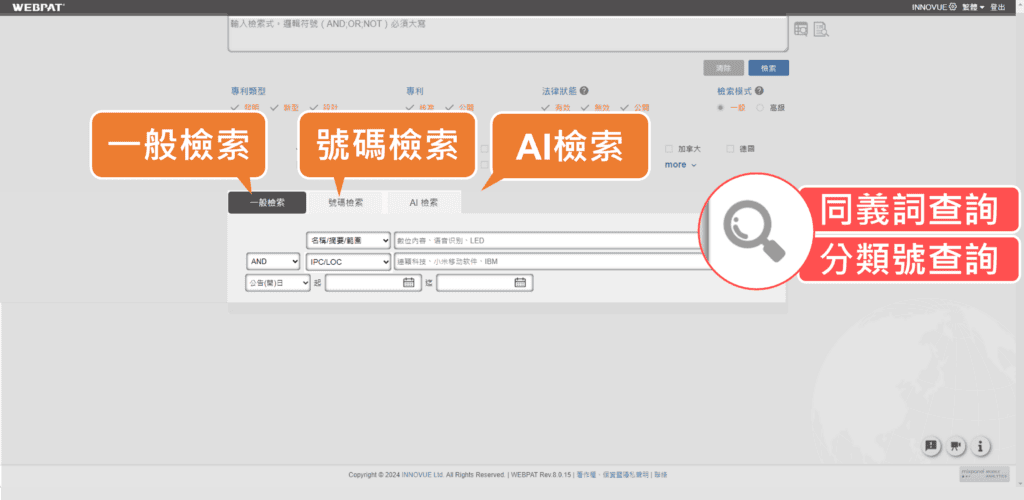 三大檢索:一般檢索、號碼檢索、AI檢索,介面大更新,操作更順暢!