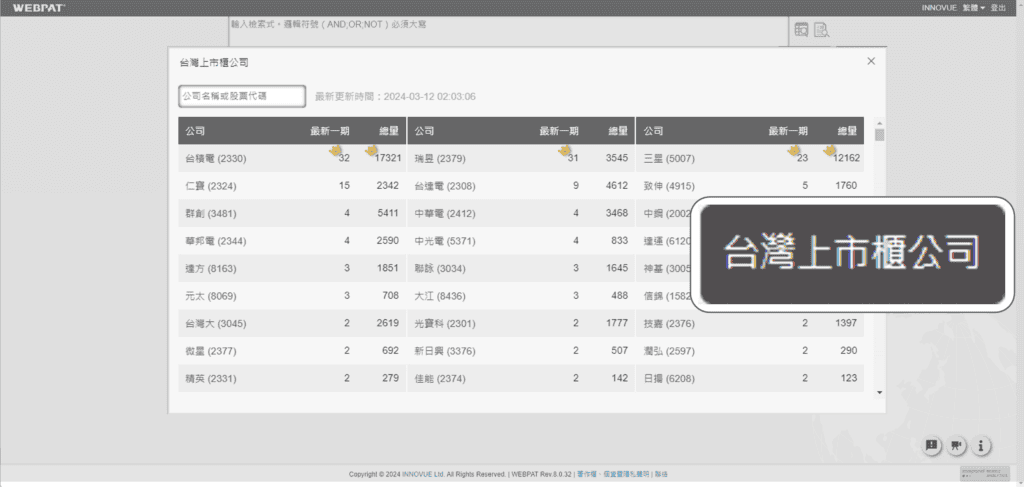 ~台灣上市櫃公司最新專利總覽~