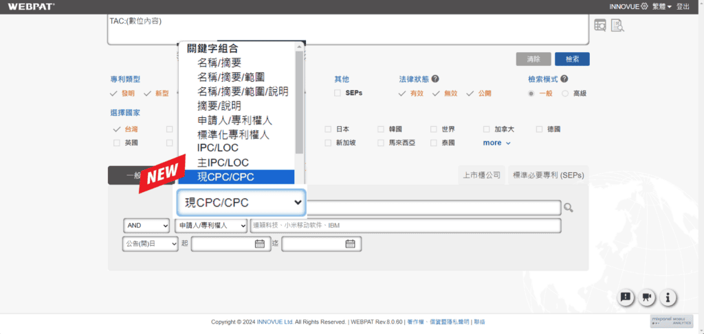 關鍵字組合檢索『現CPC/CPC』全新亮相,IPTECH納入各位專利戰士的實戰經驗,讓您快速檢索現CPC+CPC,一網打盡!