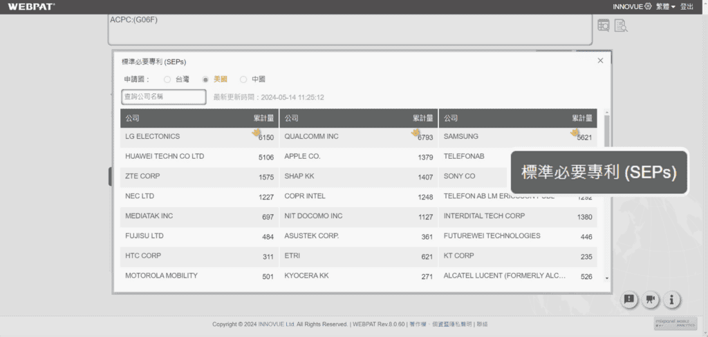 誰才是通訊版圖的主宰者?立即查詢各公司的「標準必要專利」,專利數量大比拚,來場技術的巔峰對決!