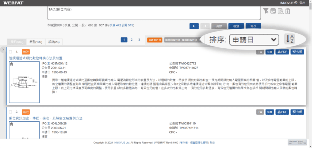 申請日A➜Z / Z➜A,都會按照專利的申請日來排序,持續優化IPTECH用戶使用介面,維持服務品質一直在做哦!